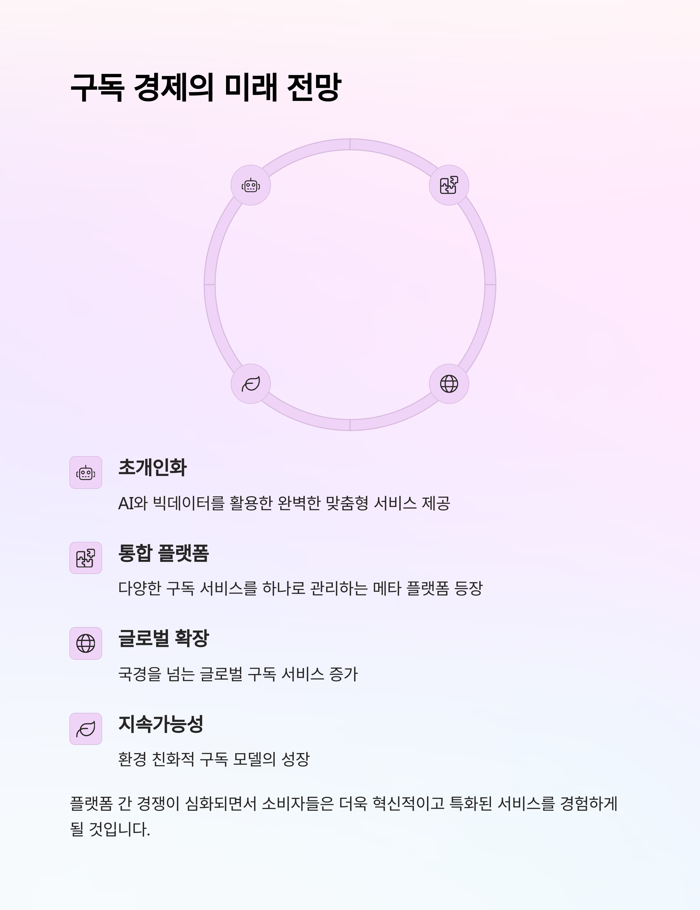 디지털 전환과 비대면 트렌드가 구독 경제 성장의 핵심 동력이 되었습니다.