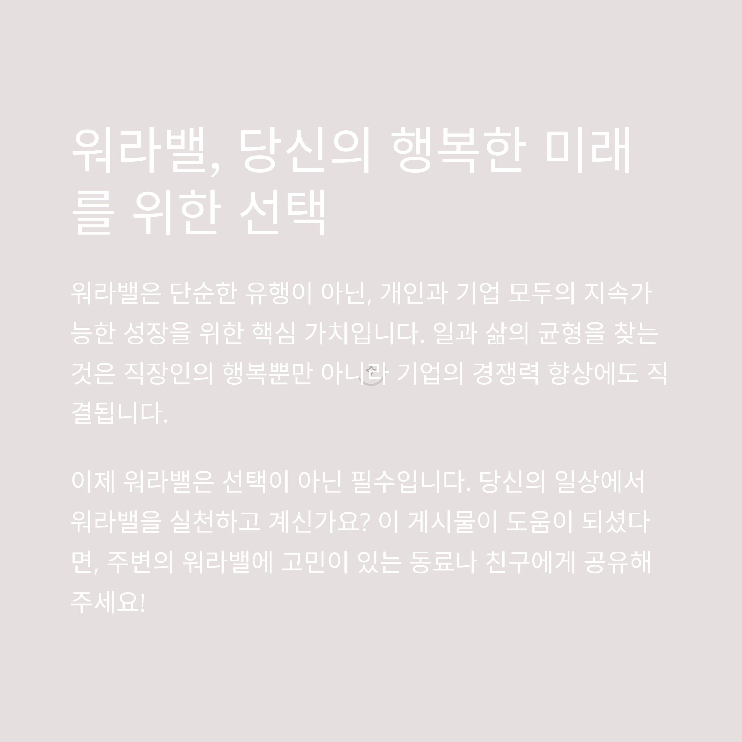 워라밸, 즉 일과 삶의 균형은 현대 사회에서 모든 직장인들이 염원하는 가치입니다. 직원들이 일과 개인생활을 균형 있게 조화를 이룰 수 있도록 돕는 것이 기업의 중요한 역할이자 사회적 책임으로 자리 잡고 있습니다.